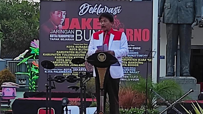"Sore ini diadakan deklarasi yang disebut Deklarasi Jaket Bung Karno. Kata jaket di sini, seperti yang diketahui bersama adalah kependekan dari jaringan kota/kabupaten tapak sejarah Bung Karno yang tidak lain merupakan catatan tapak tilas Bung Karno di 22 kota/kabupaten di Indonesia," katanya.