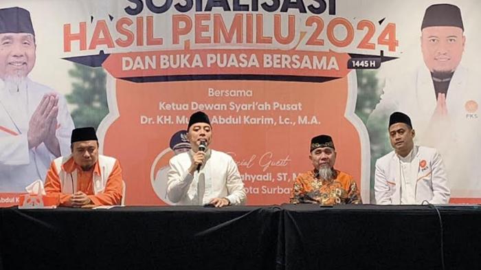 Melalui forum Sosialisasi Hasil Pemilu dan Buka Bersama, Wali Kota Eri disambut langsung Ketua Dewan Syariah Pusat PKS KH Muslih Abdul Karim.