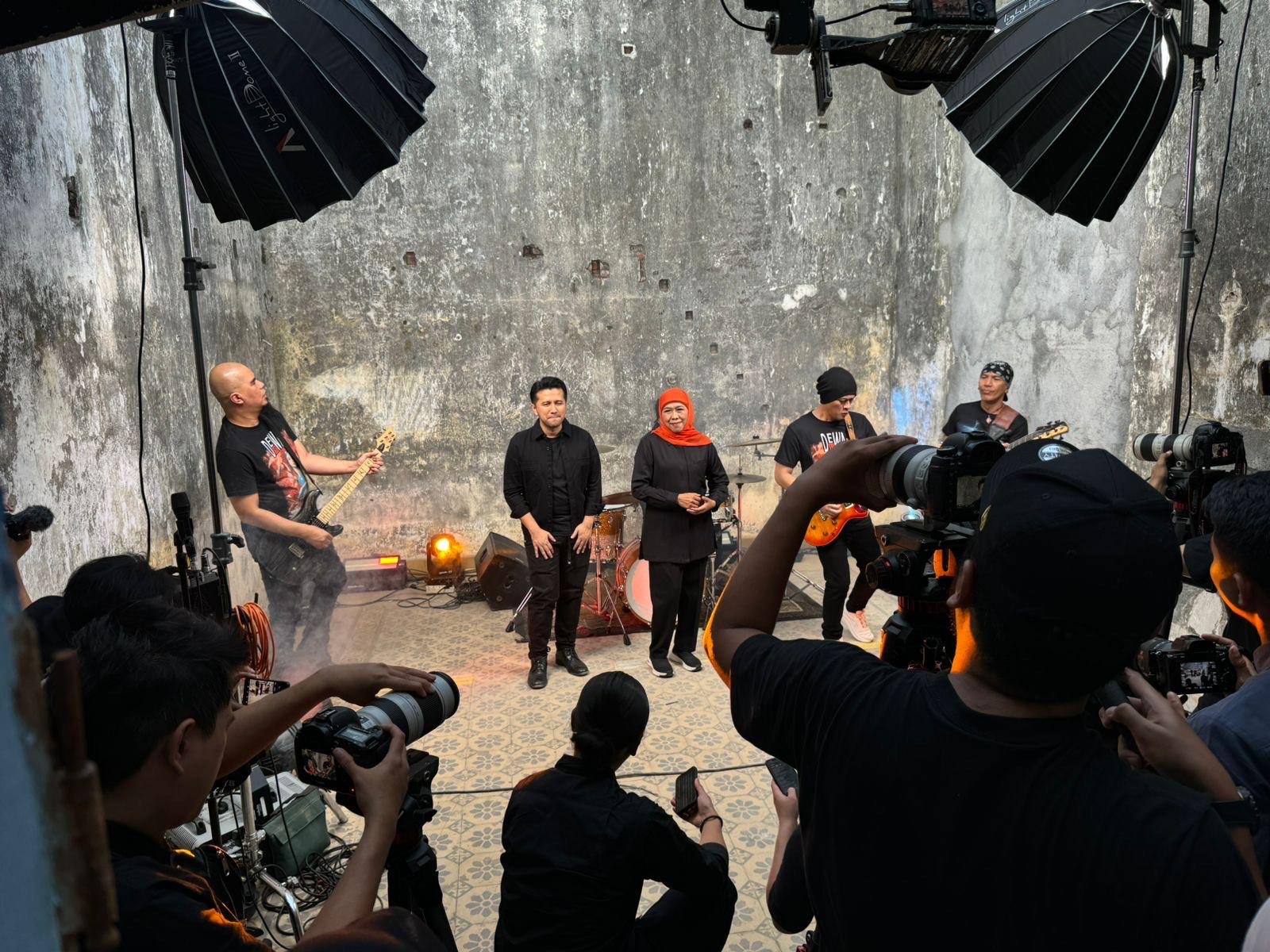 Pasangan Calon Gubernur dan Wakil Gubernur Jatim nomor urut 2 Khofifah Indar Parawansa serta Emil Elestinto Dardak bersama Dewa 19 menggarap musik video di bangunan Kayoon Heritage.