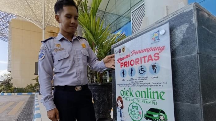 Sedang, untuk penumpang di luar kelompok rentan dan disabilitas yang ingin menggunakan layanan angkutan online, penjemputannya tetap berada di luar terminal.