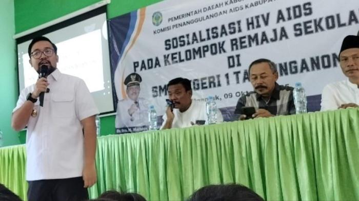 TRIBUNMATARAMAN.COM | NGANJUK - Wakil Bupati Nganjuk, Trihandy Cahyo Saputro, mengajak para pelajar untuk lebih peduli dan sadar terhadap bahaya HIV/AIDS.