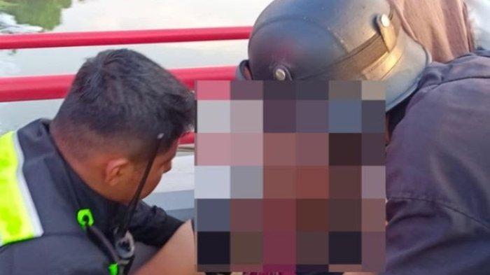 Ibu Muda Gendong Balita Mau Bunuh Diri Diselamatkan Anggota Polantas saat mau loncat di Jembatan Bandar Ngalim