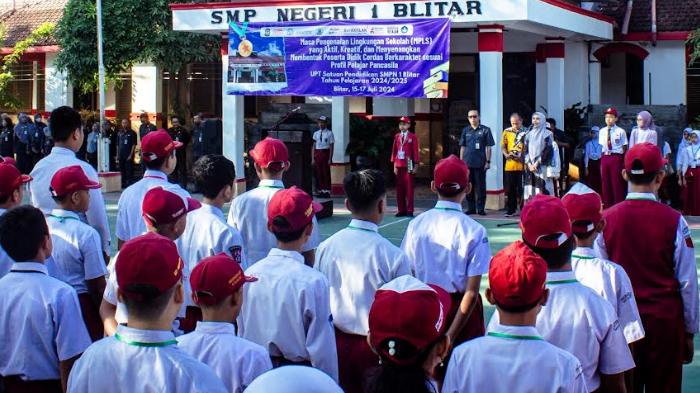 Para siswa baru di Kota Blitar mengikuti kegiatan masa pengenalan lingkungan sekolah (MPLS) mulai Senin (18/7/2022).