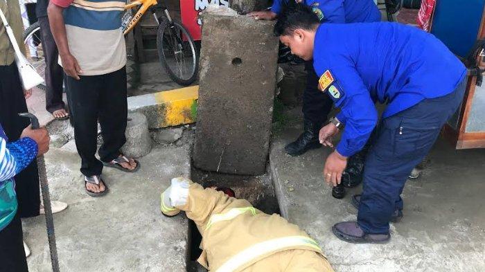 petugas damkar ambil kunci di selokan