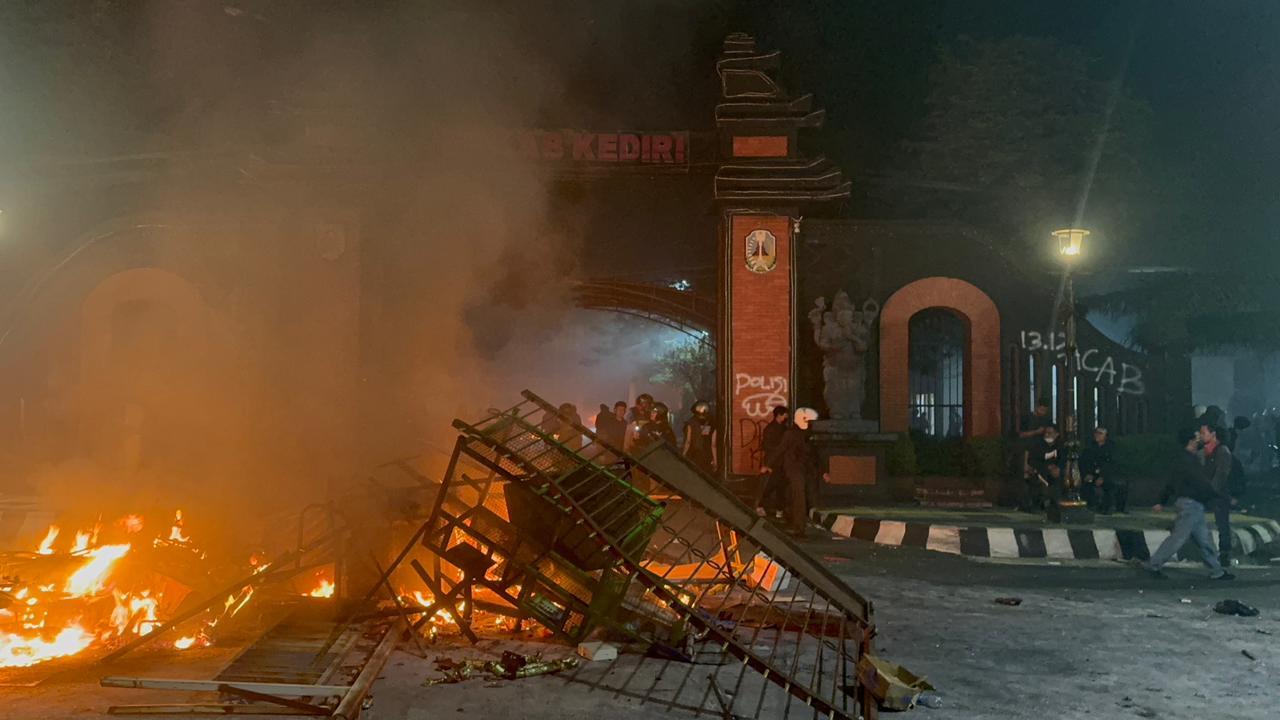 Setidaknya Lima Instansi di Kediri Raya jadi korban penjarahan dan perusakan oleh massa sore hingga malam ini